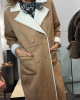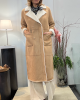 Abrigo largo de piel vuelta sintética con solapas y bolsillos.