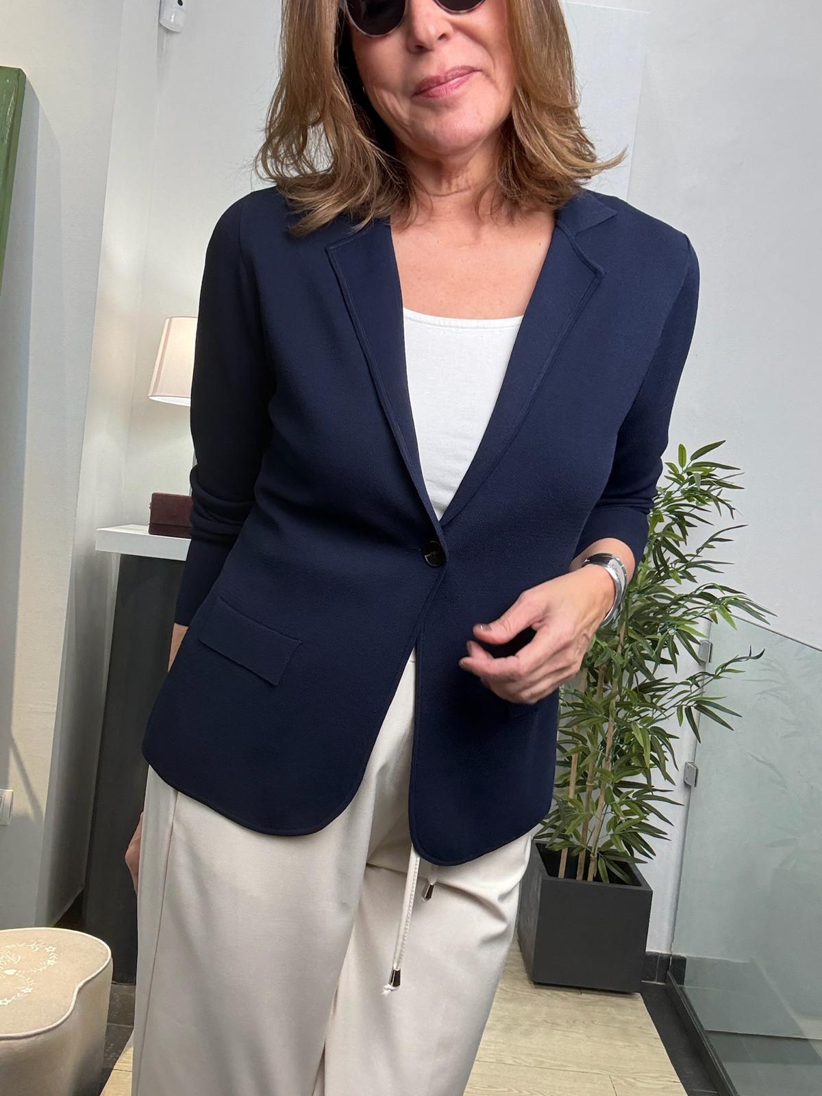 Americana de punto roma de tricot con solapa y tapeta.