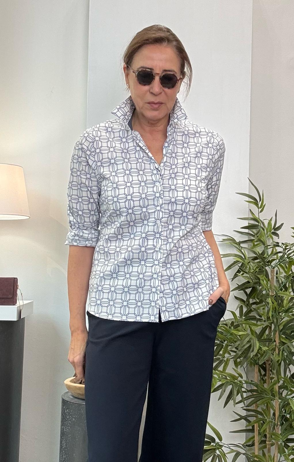 Camisa de corte clásico con estampado geométrico. Manga larga.