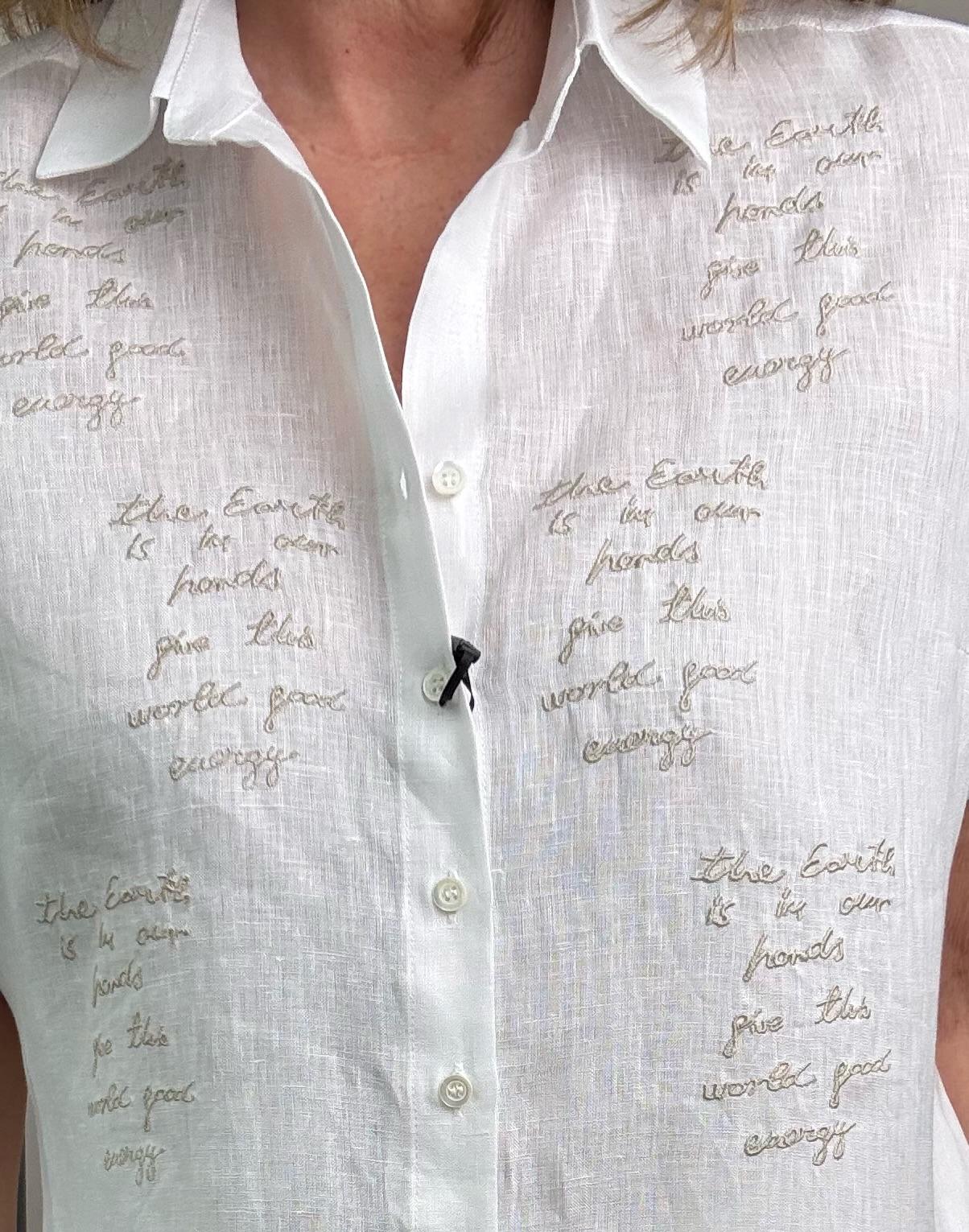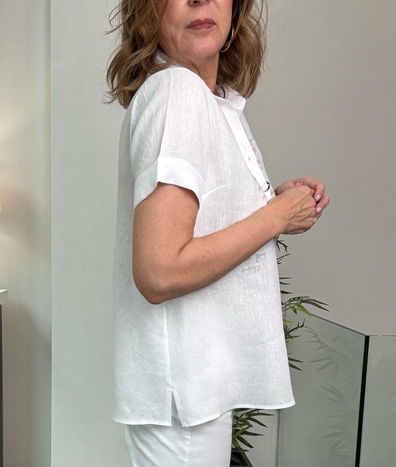 Camisa básica con texto bordado.