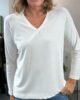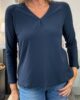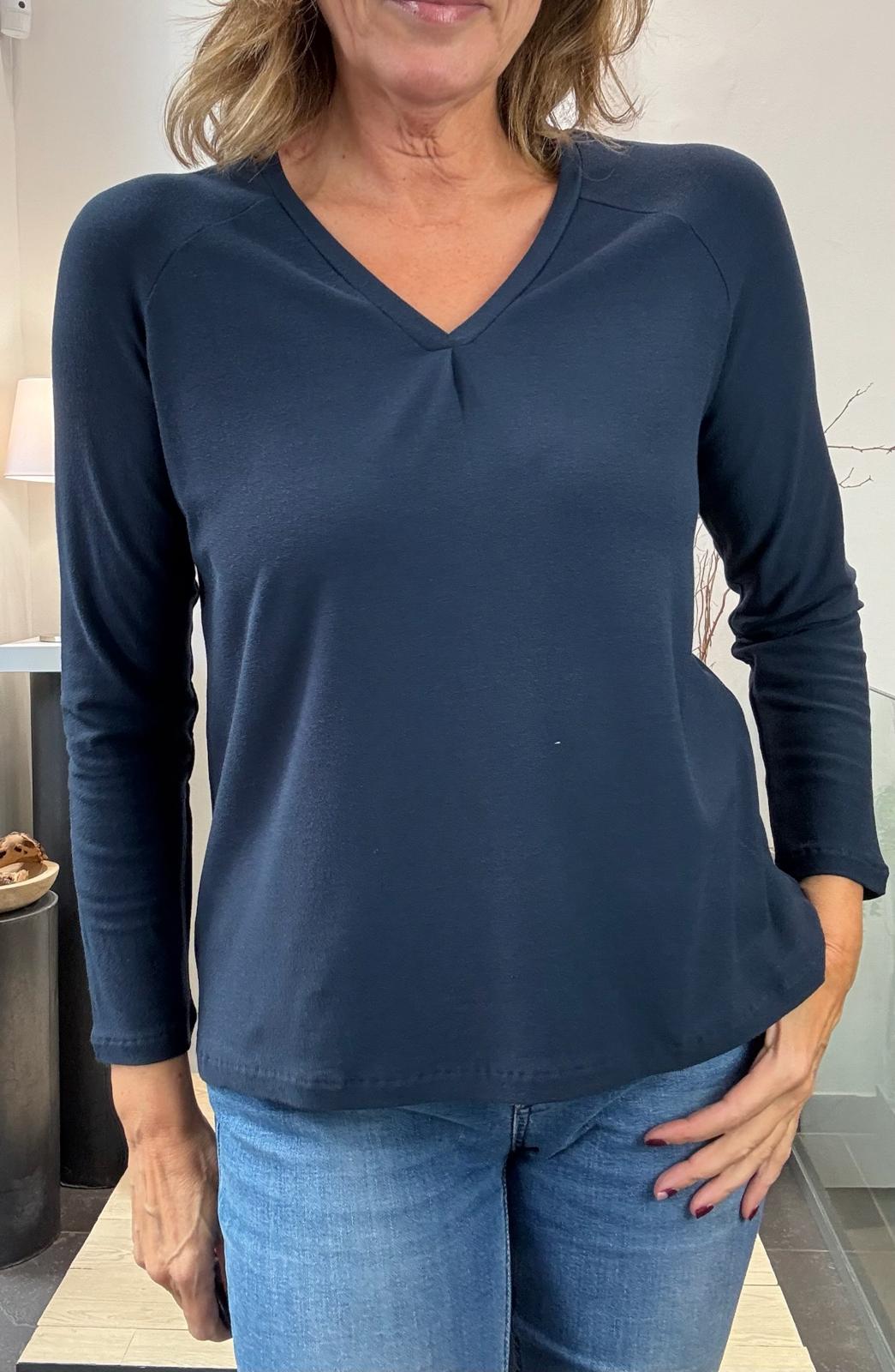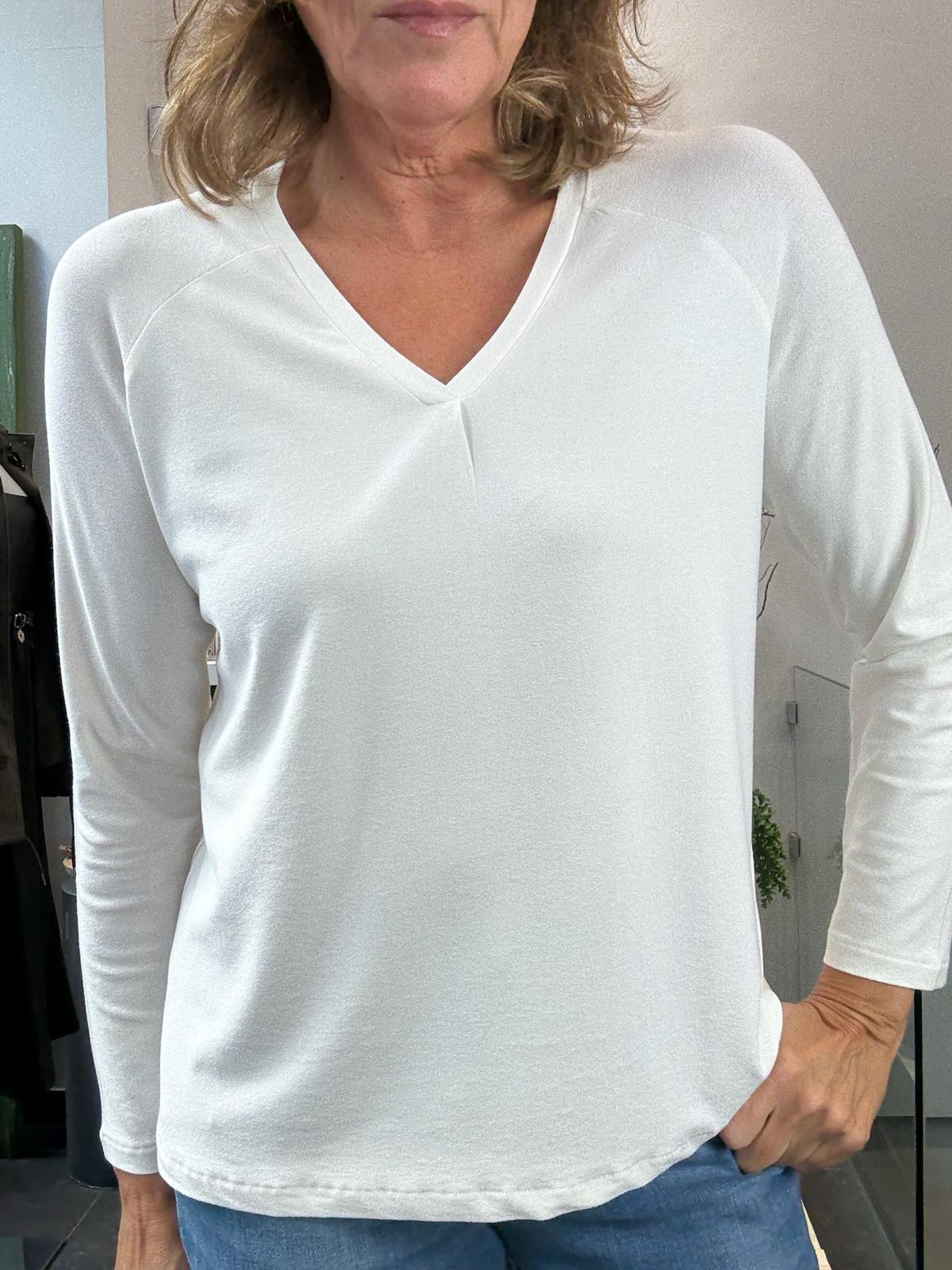 Camiseta de crep con escote pico, manga ranglan , ligeramente evasé.