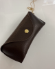 Funda rígida de gafas en piel caviar con mosquetón para colgar.