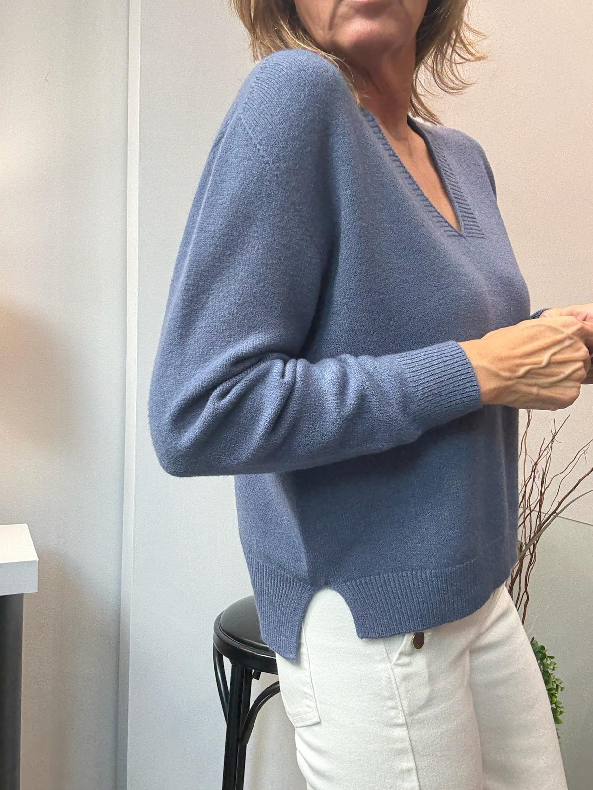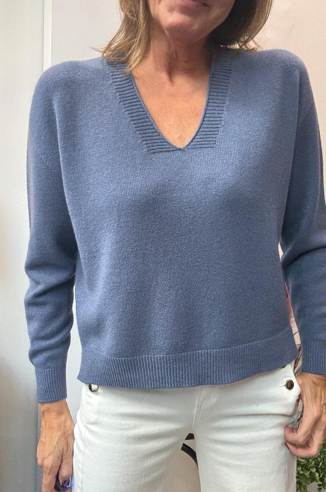 Jersey de punto en grosor medio con escote pico en elástico de punto bobo.