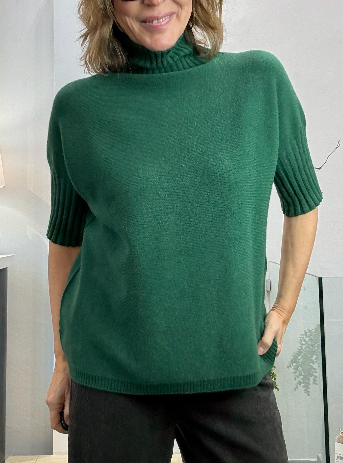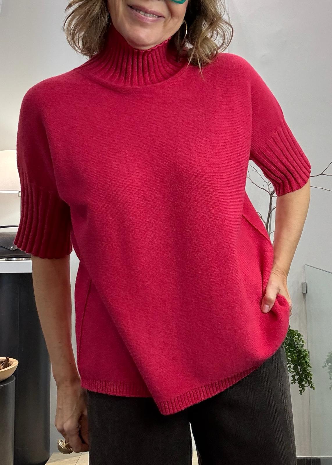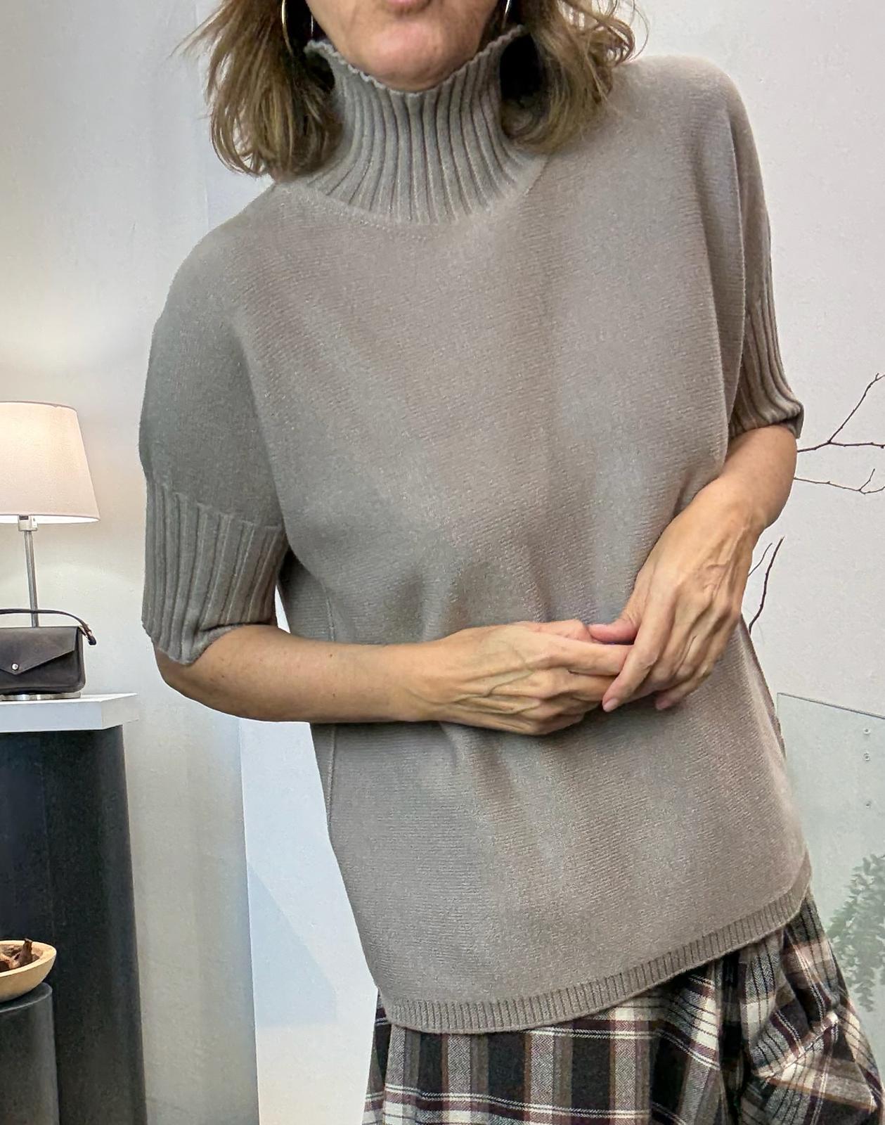 Jersey de punto liso de grosor medio con cuello perkins y manga corta.