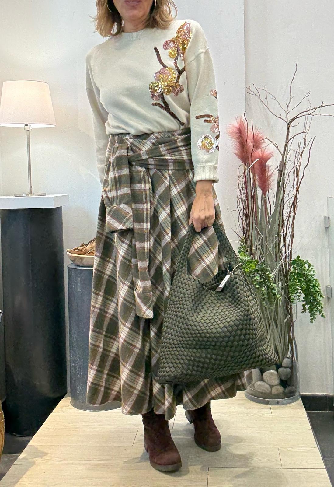 Jersey escote redondo con aberturas laterales y bordado de lentejuelas.