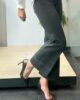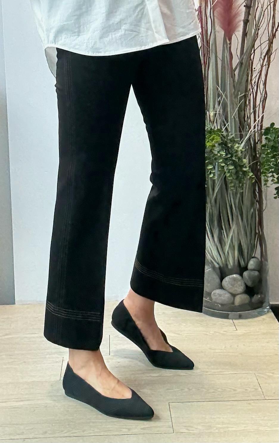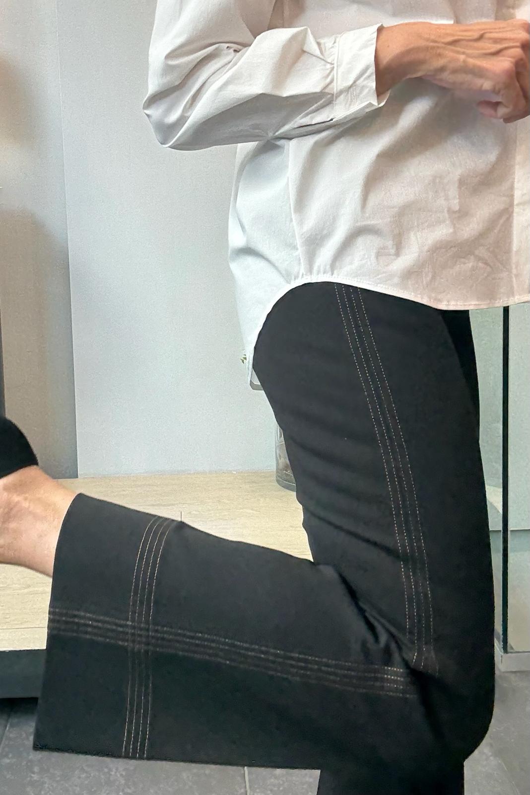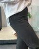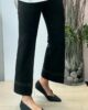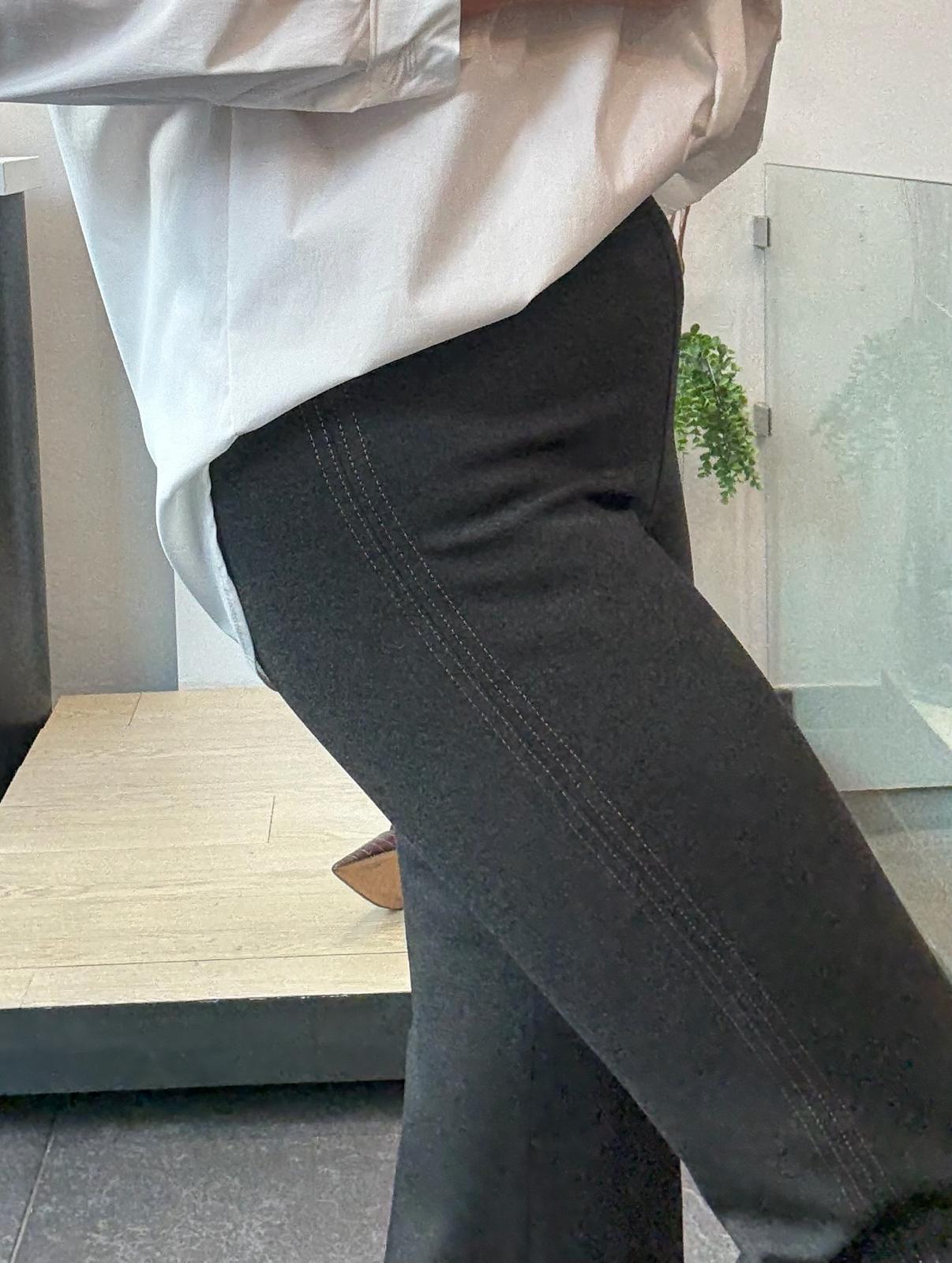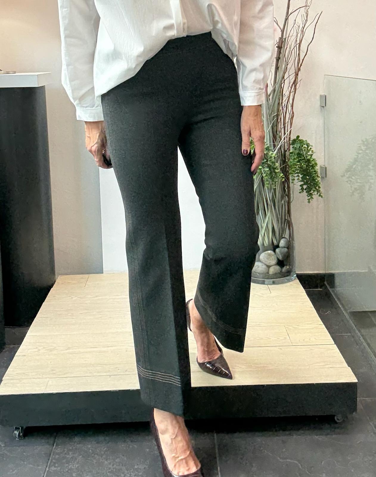 Pantalón de punto roma con goma en la cintura. Ligeramente acampanado y con detalle de pespuntes en laterales y bajo.