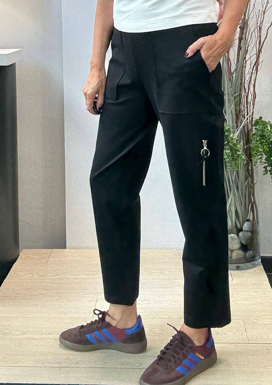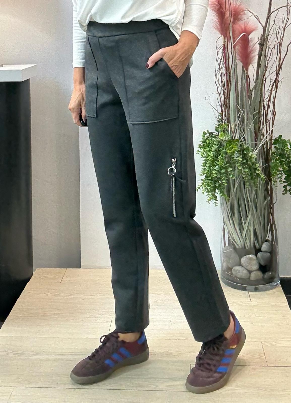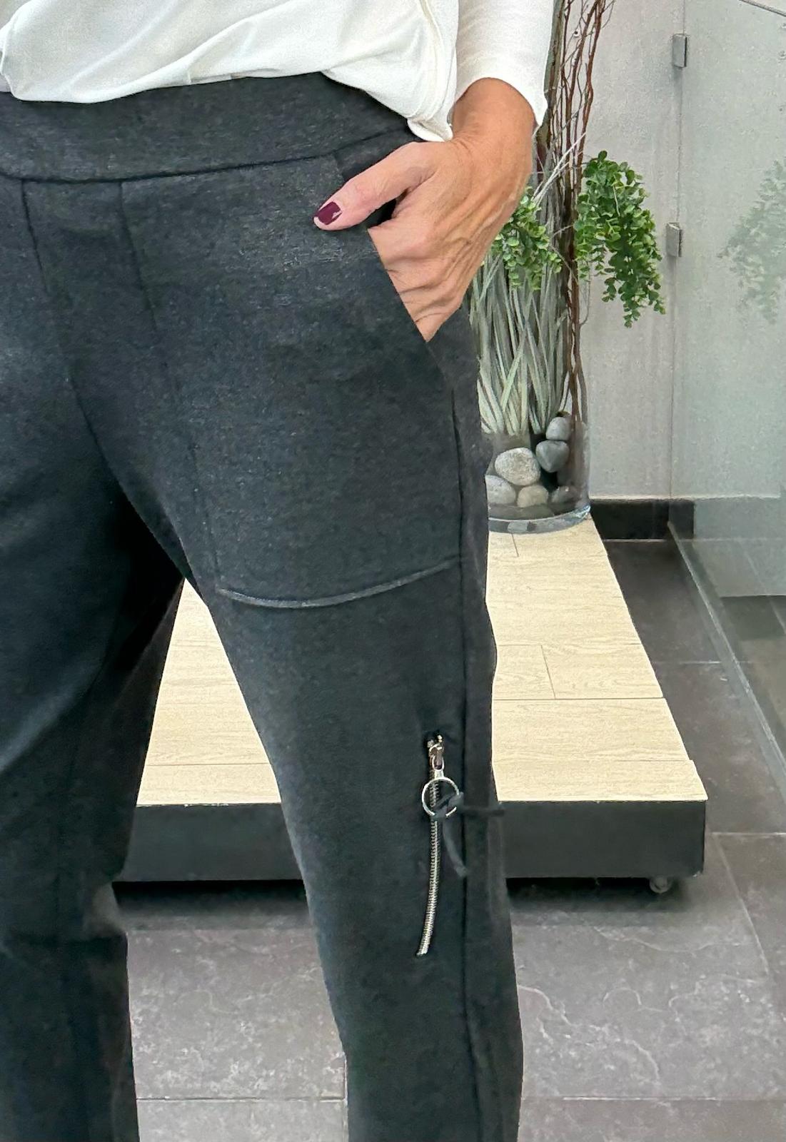 Pantalón jogger en punto roma con bolsillos de plastón y bolsillo lateral con cremallera.
