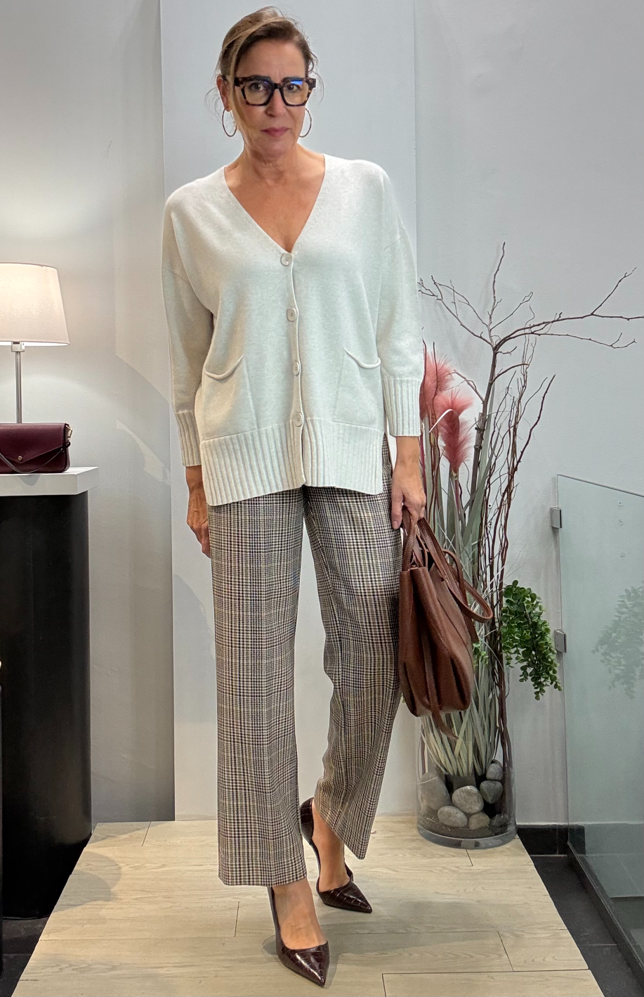Pantalón de corte recto ,cinturilla normal y bolsillo francés en cuadro harrys .