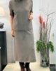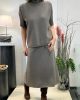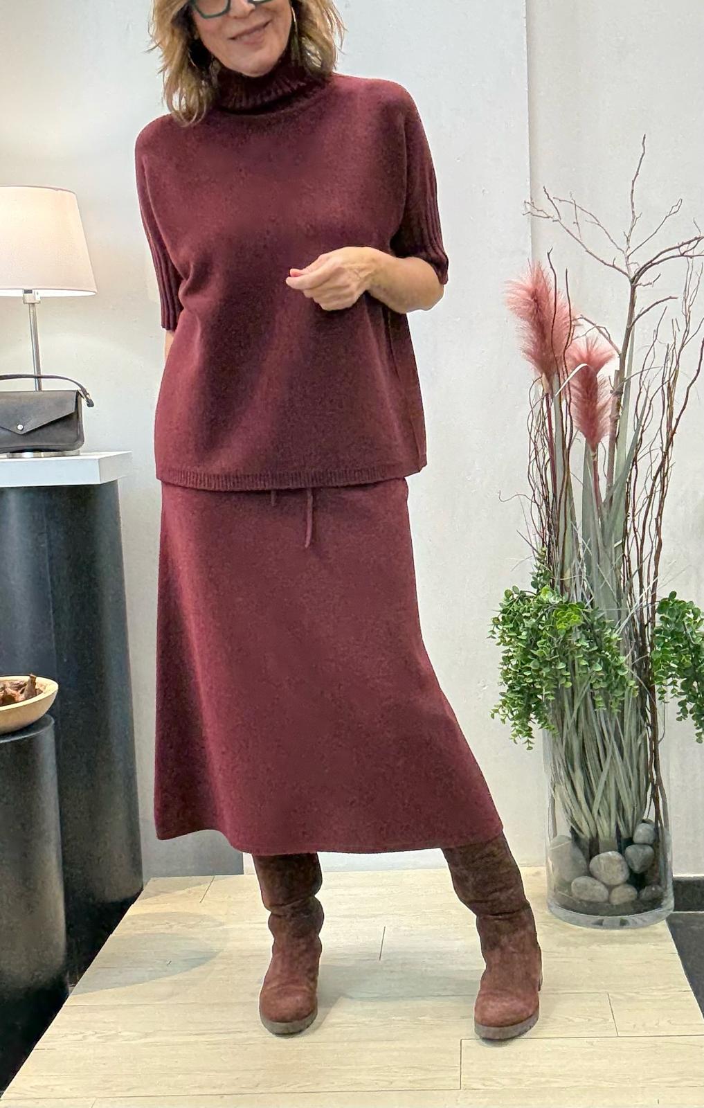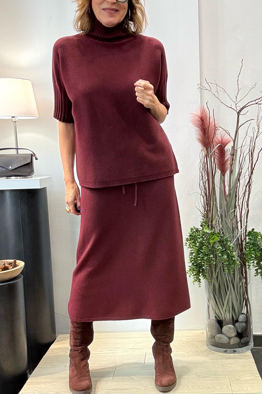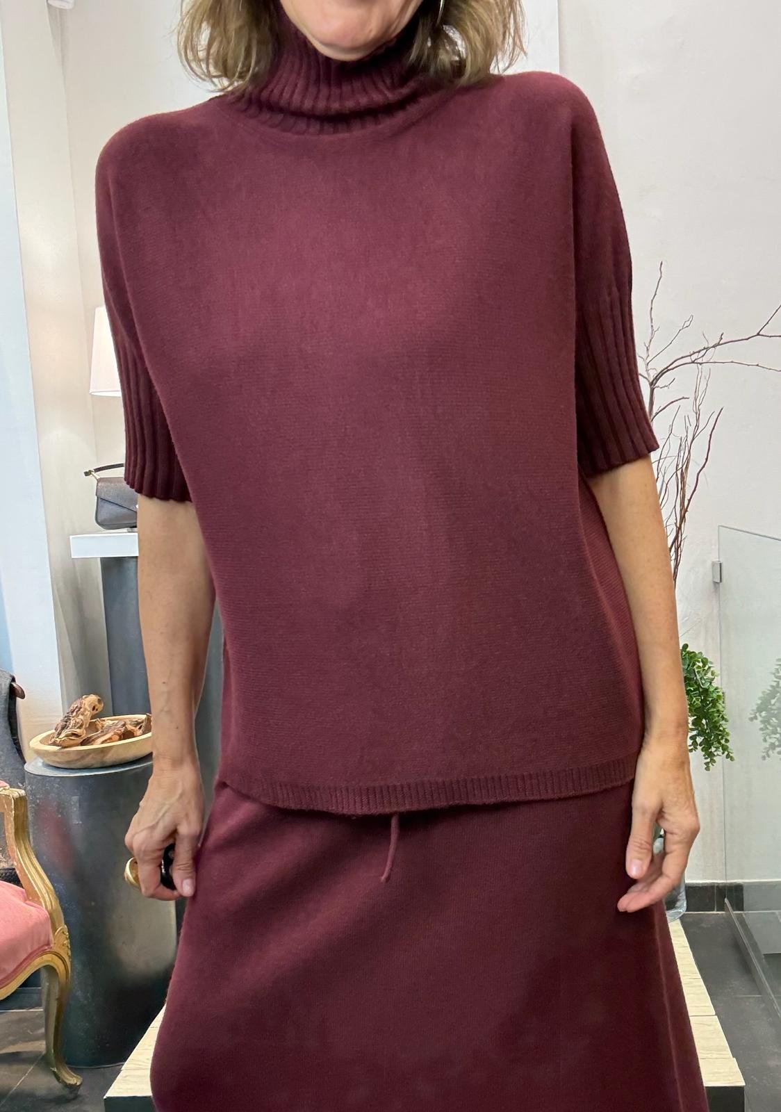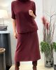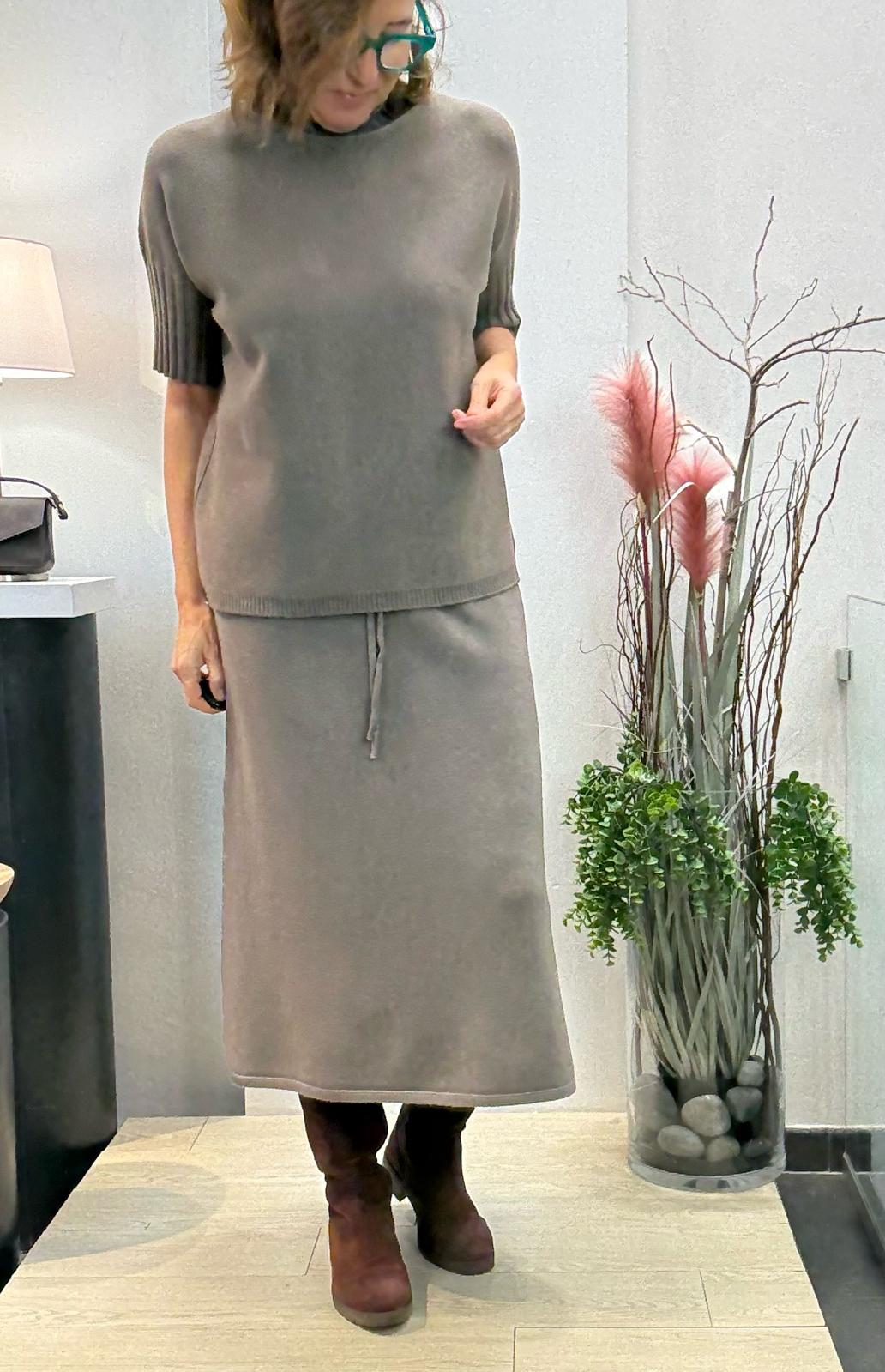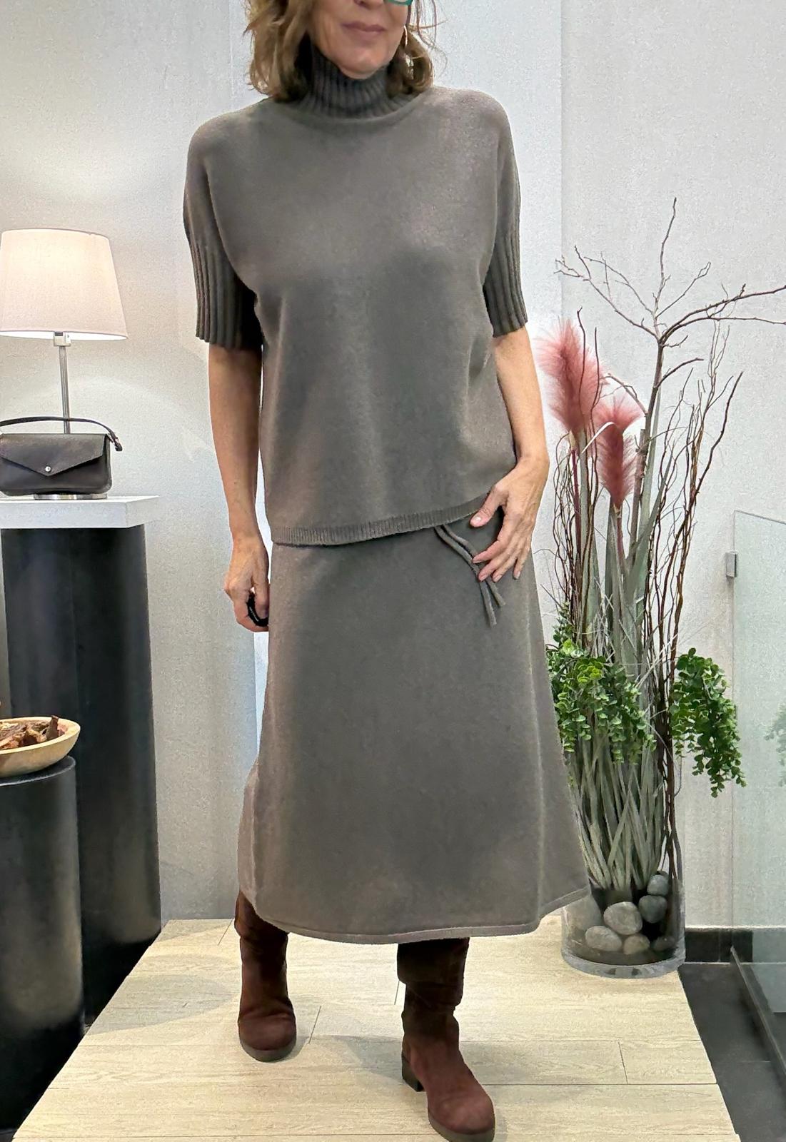 Conjunto de punto de grosor medio con jersey cuello perkins y manga corta.